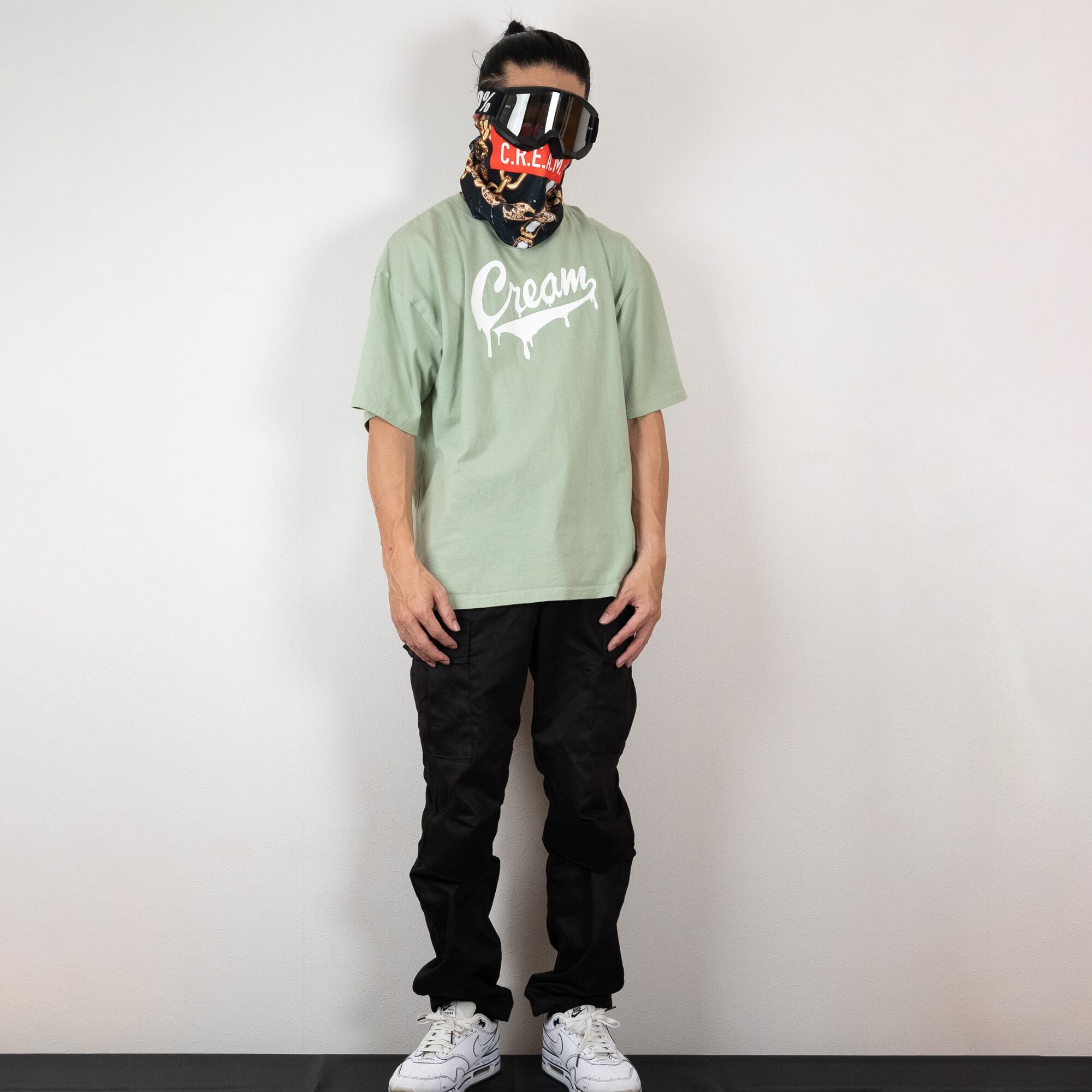 ビッグシルエットのTシャツにマットな質感のラバープリント